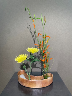 草月流の自由花らしい“取り合わせの妙”を楽しめる組み合わせです。